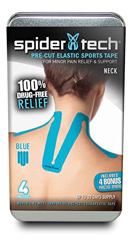 -. Title : SpiderTech - Pre-Cut Neck Kinesiology Tape - Therapeutic Sports Elastic Tape - 4-Piece Tin/Sleeve Packing - Blue