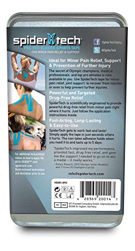 -. Feature : Ideal for Neck Pain from common conditions including Muscle strain, whiplash and osteoarthritis. SpiderTech's engineered Kinesiology Sports Tape pre-cuts made with premium Japanese Material for targeted 100% drug free pain relief / SpiderTech Therapeutic Neck Tape can relieve pain associated with the muscle strains caused by sitting in front of a computer, and looking at a phone all day while helping you maintain correct posture to prevent further injury. / 100% high grade cotton and 100% poly-acrylic adhesive, waterproof, latex free and hypoallergenic. / The pre-cut design ensures no more tape cutting mistakes. Pre-cuts are made to specific body parts in order to relieve the most pain, and ensure easy application. / Used by medical professionals, Olympians and everyday people.
