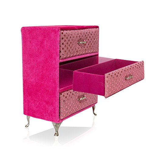 -. Title : Kidsthrill Girls Jewelry Drawer Organizer Box – 3 Comportments Storage Case Chest – For Rings, Earrings, Necklace, And keepsake - Hot Pink Velour
