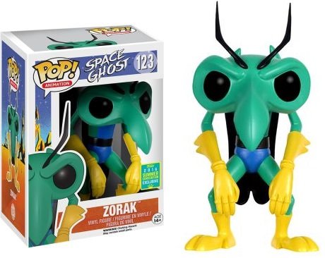Funko Pop! Animation #123 Space Ghost Zorak. Cartoon villain, giant space mantis and leader of the band 'Zorak and the Original Way-Outs', Zorak is one of Space Ghost's greatest enemies. Whether on set of a talk show or dominating planets, Zorak is never without his quick wit and Matter Intensifier. Available exclusively as part of the 2016 Summer Convention, your Hanna-Barbera collection will forever be amiss if you don't get your hands on this incredible Pop! vinyl. This was a 2016 summer convention exclusive. Funko has done it again!Feature