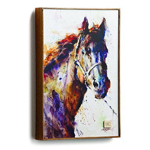 Solid ash wood frame surrounds the canvas print. A brass medallion on the art work above the signature has the artists Initials. 8.25W x 12.25H. Sawtooth hanger. Print displays on a table, shelf, or wall. From the big sky carvers Dean Crouser collection of wall art and stoneware.Feature
