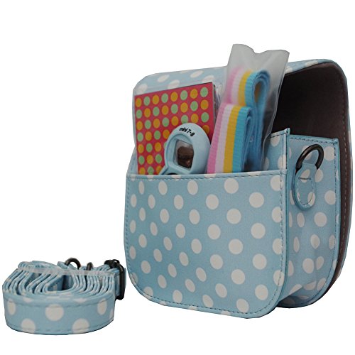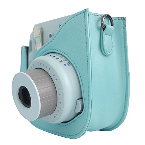 Tasche/ Fall fur Fujifilm Instax Mini 9/8 / 8+ Instant Film Kamera Ice Blue. Vintage Compact Schutztasche. Mit verstellbarem Schultergurt & Tasche. Von SAIKA