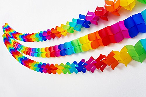 Paper Full of Wishes Rainbow Four-Leaf Clover Tissue Garlands - 5 Pack (Each Garland 3 Meters Long) Perfect for Colorful Theme Party Celebrations by