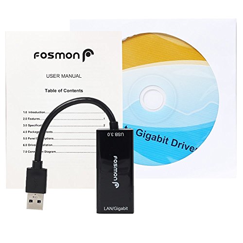 Fosmon USB 3.0 to RJ45 10/100/1000Mbps Gigabit Ethernet LAN Network Adapter AX88179 QF QFN68 Chipset (Black)