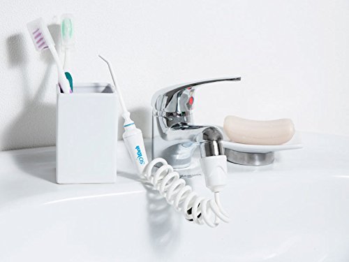 The ONLY faucet operated water flosser with SAFETY VALVE FOR AUTOMATIC CONTROL OF WATER PRESSURE (patented).