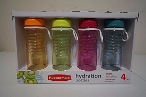 Studio : RUBBERMAID Publisher : RUBBERMAID Product Description These Rubbermaid BPA-free hydration bottles are perfect for when you're on-the-go. Stain- and odor-resistant, they make for easy cleaning when there's little time to do so. The leak-proof design offers durability, and each bottle also has a finger loop and easily fits in cup holders. They're also dishwasher and freezer safe. Plus, the colors help determine in a family or group of 4 whose beverage is whose. 0