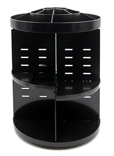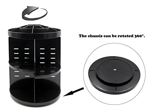 360 Degree Rotating Large Makeup Organizer Adjustable Round Desktop Cosmetics Storage Box Girls - Black