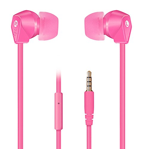 Wired Earbuds, ULDUM Stereo Noise Cancelling HiFi Super Bass Sweatproof In-ear Dual Driver Earbuds with Built-in Microphone for Music Players - Pink