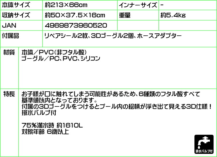 付属の3Dゴーグルをつけるとプール内の絵柄が浮き出て見える3D仕様!