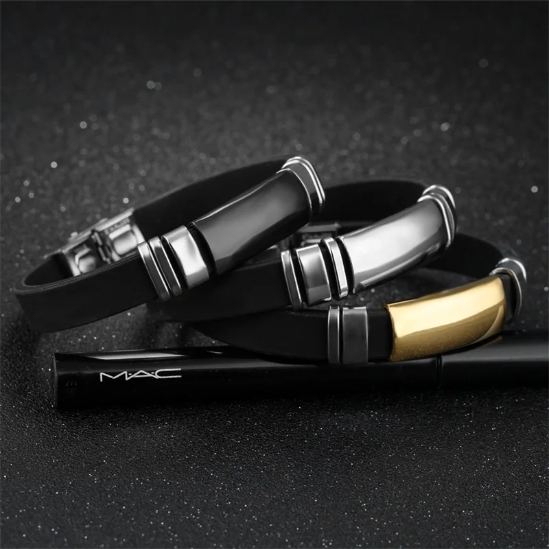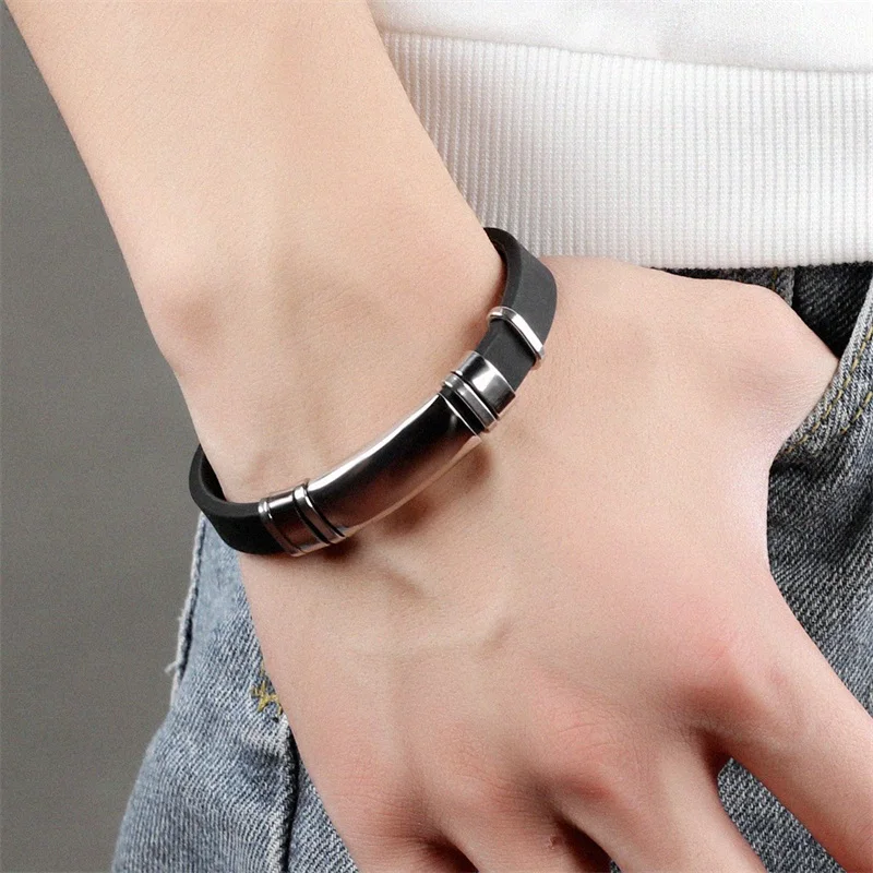 Style:rubber stainless steel bracelet