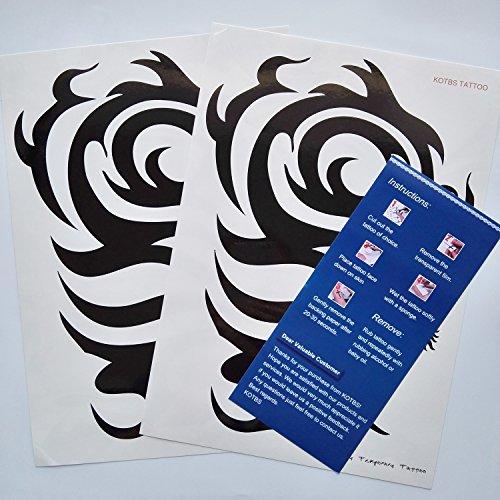 Kotbs 2 Sheets Large Tribal Totem Temporary Tattoo - A4 Size 8.27'' x 11.67'' - Body Tattoos Sticker for Men Women Fake Tattoo Paper Waterproof