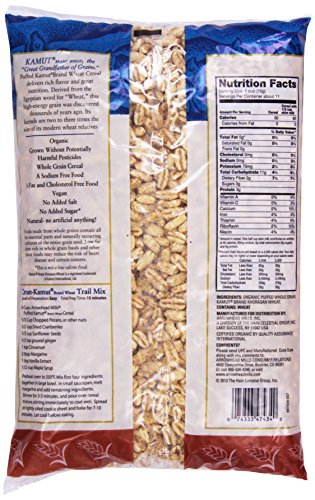 -. Feature : Made with puffed organic whole grain kamut / Fat-free; high in protein / Makes a hearty and healthy high-energy morning meal / Made and manufactured according to USDA Certified Organic standards
