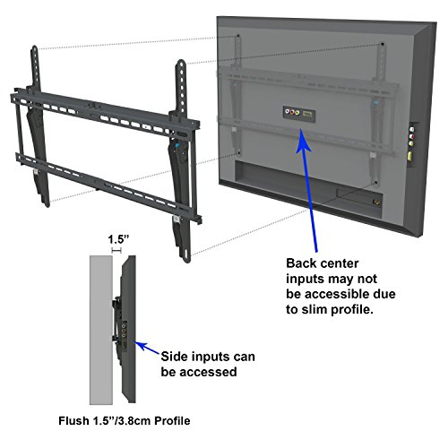 -. Feature : Ideal for most 32 to 65"(some 20-75'') LED, LCD, and Plasma TVs that weigh up to 165lbs(75KGS) / VESA Compliant patterns: up to 600x400mm; 10-YEAR GUARANTEE / Tilt Range 15°up/down; adjustable mount with screen tilt for better viewing angels / Profile 2.16''(5.5cm); 100% Cold Rolled Steel for the security and steadiness / Including 4 Velcro cable ties for easy cable management; Including 10ft HDMI Cable and Magnetic Bubble Level