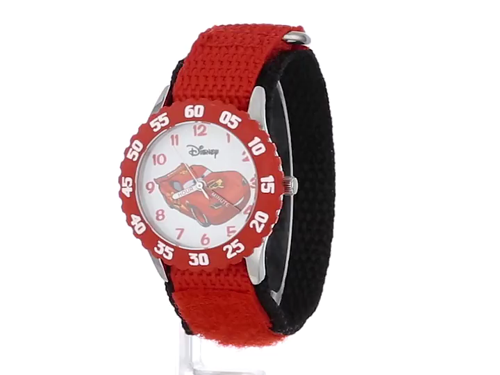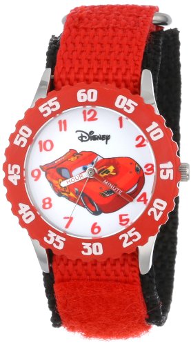 Disney Kids' W001003 "Time Teacher" Cars Lightning McQueen Stainless Steel Watch with Red Nylon Strap