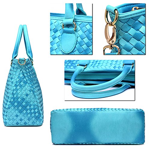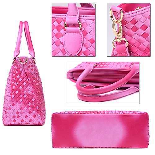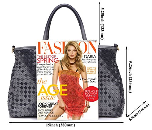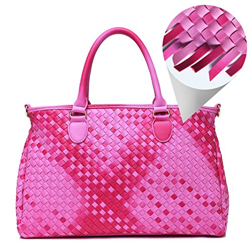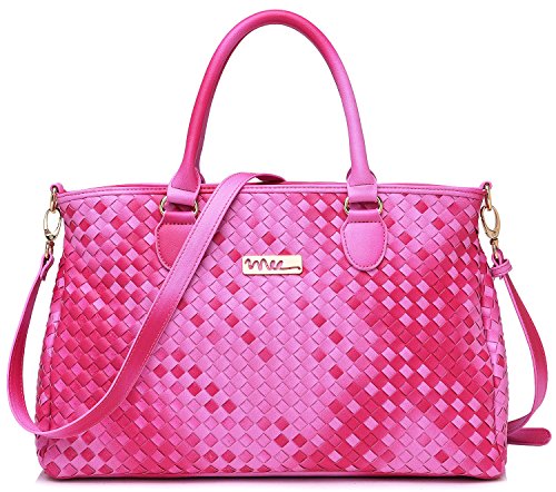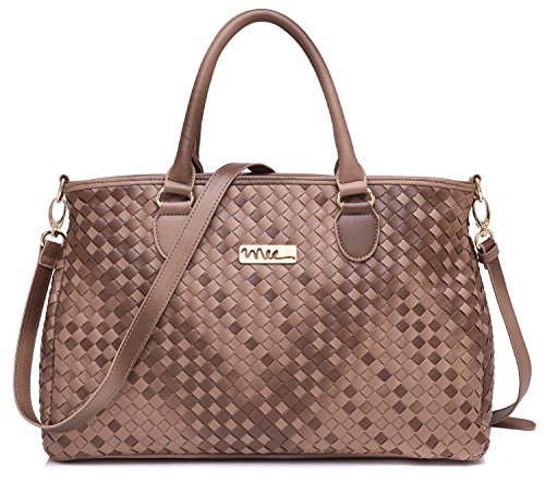 NNEE® Medium Hand Woven Leather Tote Bag Satchel with Multiple Pocket Design