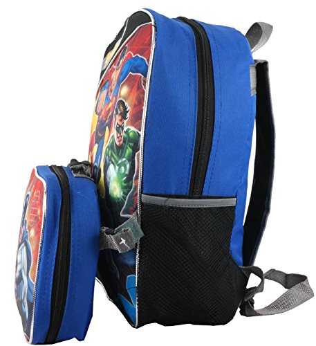 - Feature : Let your child go back to school with DC's finest watching out for them / Adjustable padded shoulder straps for additional comfort / Easy remove/attach matching soft lunch box / Two elastic net side pockets for water bottles and school supplies / One large zippered compartment for binder, books and folders