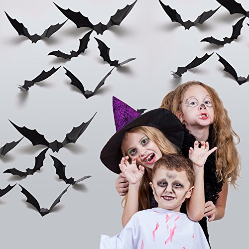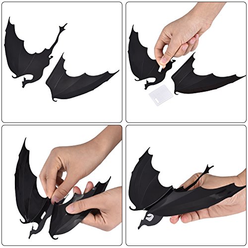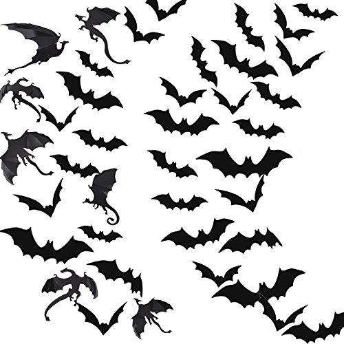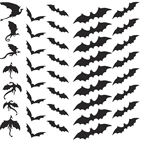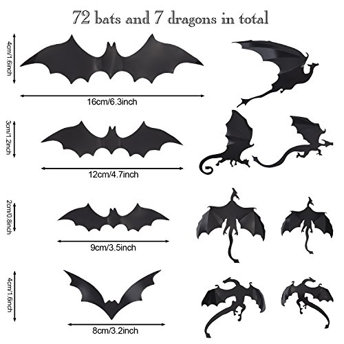 Pangda 79 Pieces Halloween Party Supplies Decorations 3D Scary Bats and Dragons Wall Decals Wall Sticker Window Decor