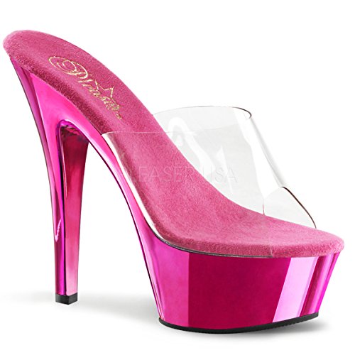 Pleaser KISS201_C_HPCH-6 1.75 in. Chrome Plated Platform Slide Shoe, Pink Clear, Size 6