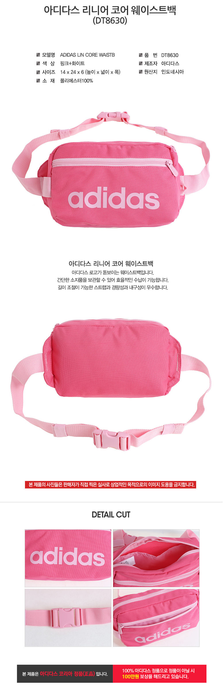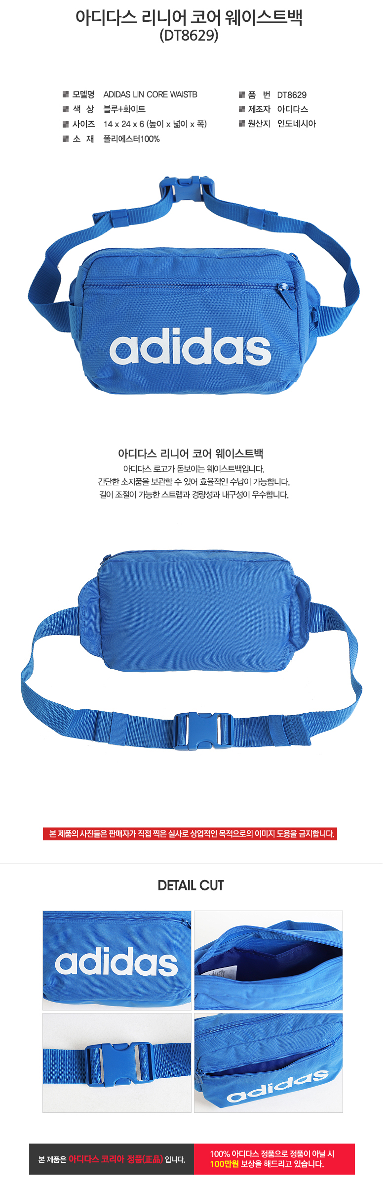 아디다스(ADIDAS) [DT4827] 리니어 코어 웨이스트백 - 블랙