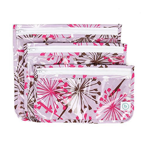 Lightweight with a clear front, Travel Bags are TSA compliant and stash easily into carry-on bags. Each set is made up of three bags in different sizes, making packing and organizing easy. Made from Bumkins' easy wipe, stain and odor resistant, waterproof fabric with a catch-all pocket. Spot clean only. BPA, PVC, vinyl, phthalate and lead free. Designed in Arizona, responsibly made in China.Feature