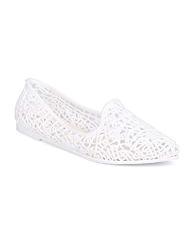 (Refresh)/Women's/Slippers/DIRECT FROM USA/Refresh EC31 Women Jelly Pointy Toe Crochet Albert Slip On Loafer - White