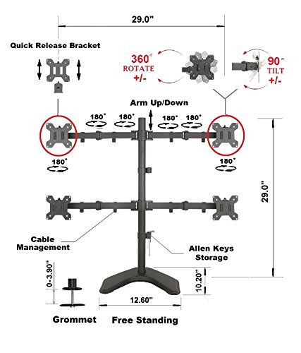 EZM Quad 4 LCD LED Monitor Mount Stand Free Standing Holds Up to 27" Widescreen Displays(002-0015)