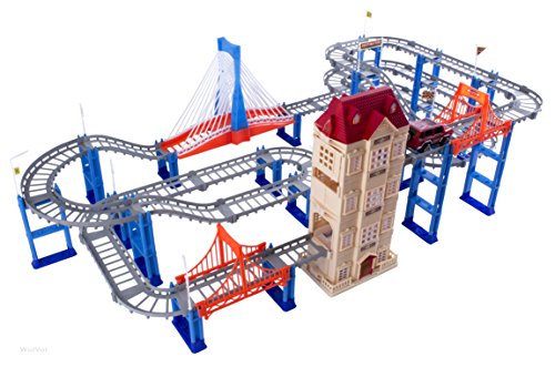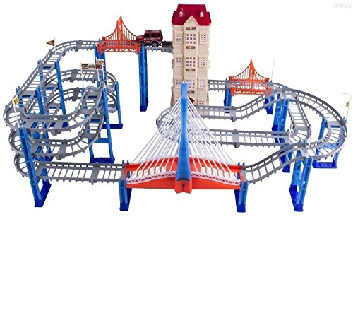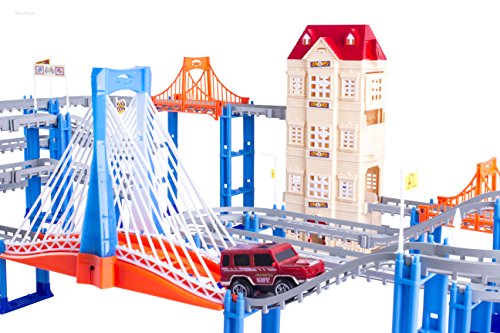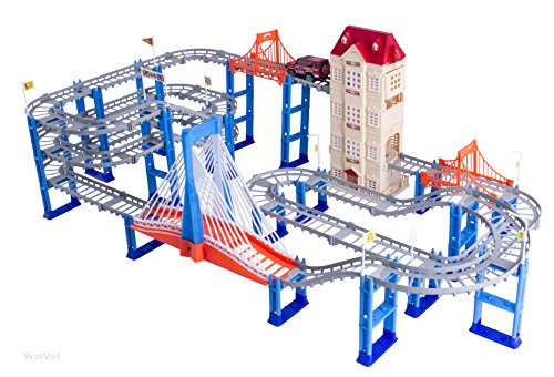 - Title : WolVol 3 Level Highway Tracks with Electric SUV Car, Bridges and Automatic Lift Elevator, Music and Lights (Item size while assembled is 35 inches wide, Set of 156 pieces)