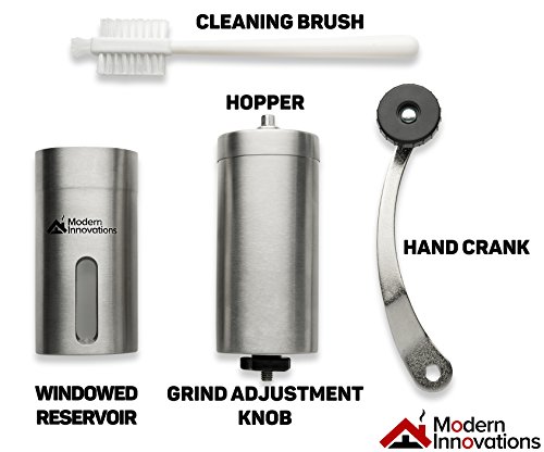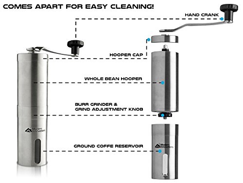 -. Title : Modern Innovations Stainless Steel Manual Coffee Grinder -Best Coffee Bean Grinder Hand Crank Mill with Adjustable Burr Grinder Design for Freshly Ground coffee for French Press & Turkish Coffee