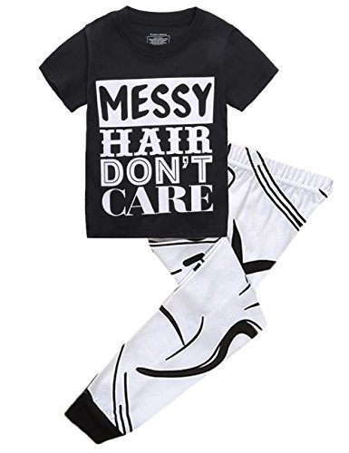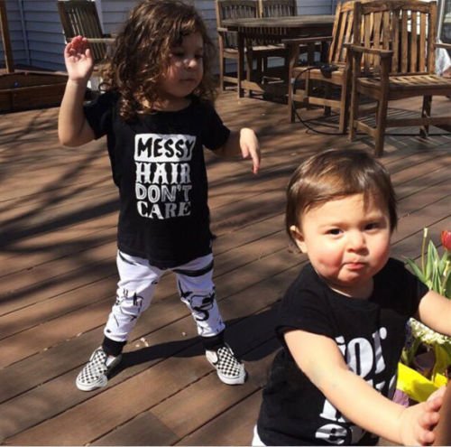-. Binding : Apparel -. Brand : Magical Baby -. Color : Black+White -. Department : girls -. Feature : Brand new and high quality / Material:Cotton blend / Round neck designed for easy on-and-off / Cute and Comfortable, playwear / homewear for your little one / Please ignore the estimated delivery date,it usually takes 8-15 days for delivery -. PackageQuantity : 2 -. ProductGroup : Apparel -. ProductTypeName : SHORTS -. Title : Kids Girls "MESSY HAIR DON'T CARE"T-shirt and Printing Pants Outfit