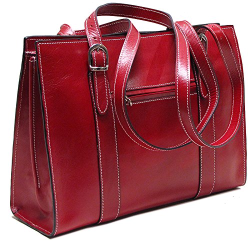 -. Feature : handmade Italian calf-skin leather / 12" high x 16" long x 5" wide / adjustable crossbody strap / stripe canvas interior / Smartphone pocket