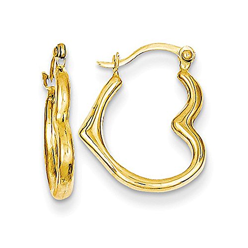-. Title : 14K Yellow Gold Heart Shaped Tube Hoop Earrings, .60 In (16mm) (2mm Tube)