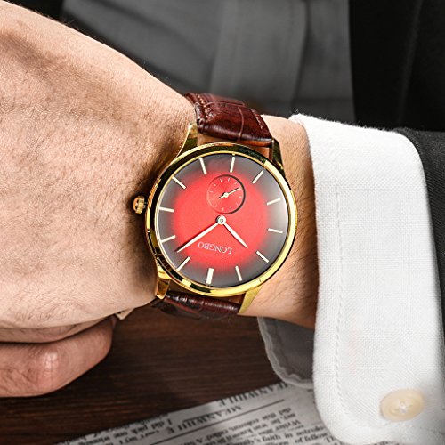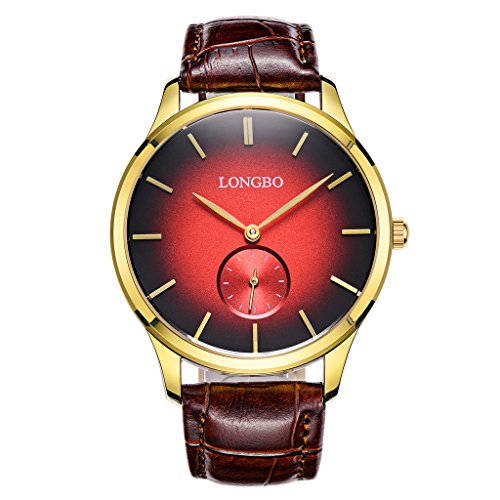 사람을 위한 LONGBO캐주얼 남의 브라운 크로커다일 가죽 밴드 아날로그 쿼츠 비지니스 시계 금 케이스 커플 드레스 시계 방수복 서브 다이얼적 다이얼 손목시계