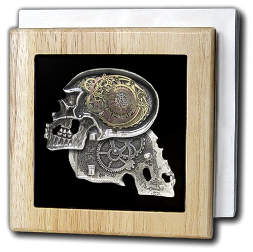 -. Title : Dooni Designs Steampunk Designs - Steampunk Gothic Faux Metal Skull Image - Tile Napkin Holders