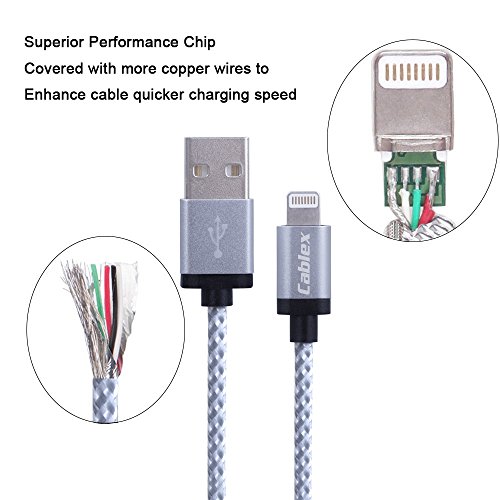Durable Nylon Fiber Cloth -- Instead of plastics or Polycarbonate sheathing, this Cablex lightning cable features a unique high tensile nylon construction. The nylon fiber cloth is wound tightly around the cord lending it superior durability and adding a bit to its flexibility. Nylon as a fabric happens to be waterproof with a high stress quotient so this Cablex cable ought to last really long.