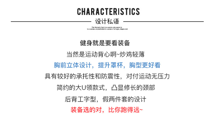双层假2件背心,内层工子背分散双肩压力,透气孔,C型修饰背部线条