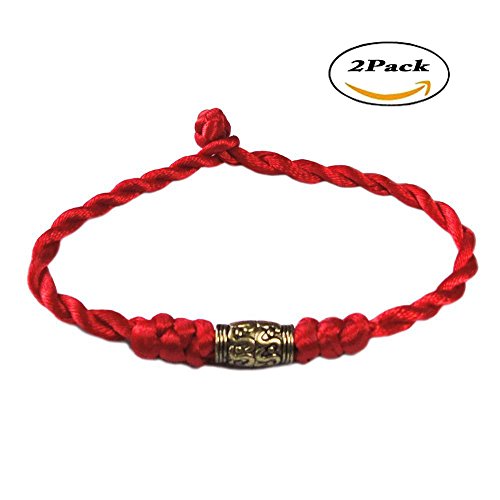 BrightTea Chinese Feng Shui Lucky lucky red string rope hand-woven pieces with pure the bronze beads, packing 2PCS