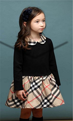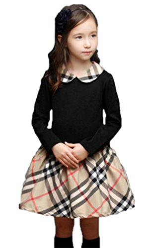 iikuru 女の子 フォーマル 長袖 onepiece ベージュ チェック柄 黒 100 サイズ / 子供 子ども こども ドレス スカート 女 子供服 服装 青 / 卒園式 入学式 卒業式 入園式 七五三 結婚式 発表会 TH-313
