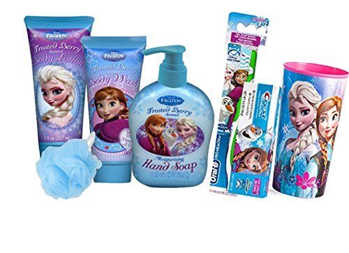 Disney Frozen Elsa & Anna 7pc. All Inclusive Girls Bathroom Beauty Frosted Berry Collection! Includes Body Wash, Body Lotion, Hand Soap & Bath Puff! Plus Bonus Frozen Bright Smile Oral Hygiene Set! B011AWWOMI