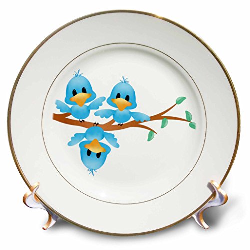 3dRose cp_60753_1 Trio of Blue Birds Porcelain Plate, 8-Inch