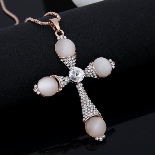 -. Title : Vintage Personalized crosse Pendant Crystal Sweater Necklace for Girls