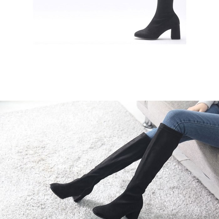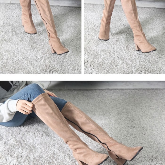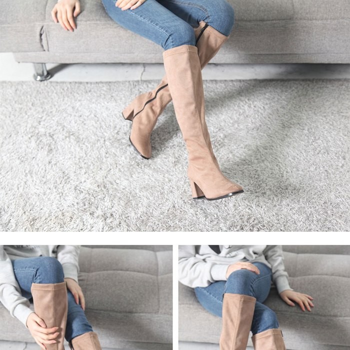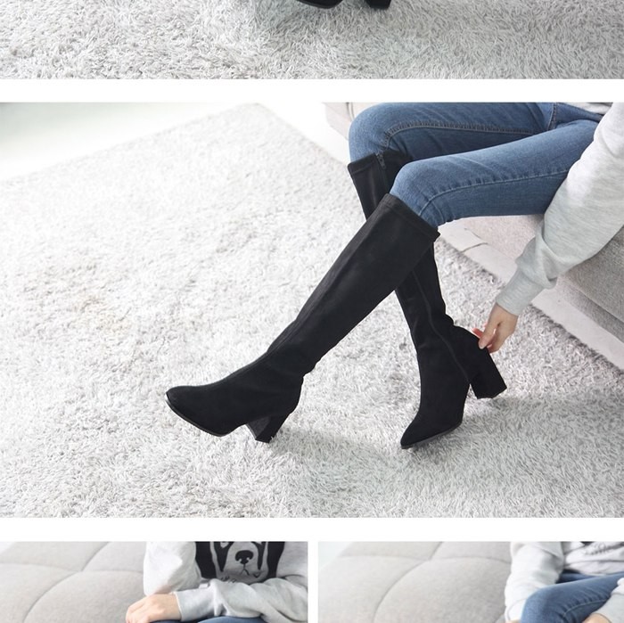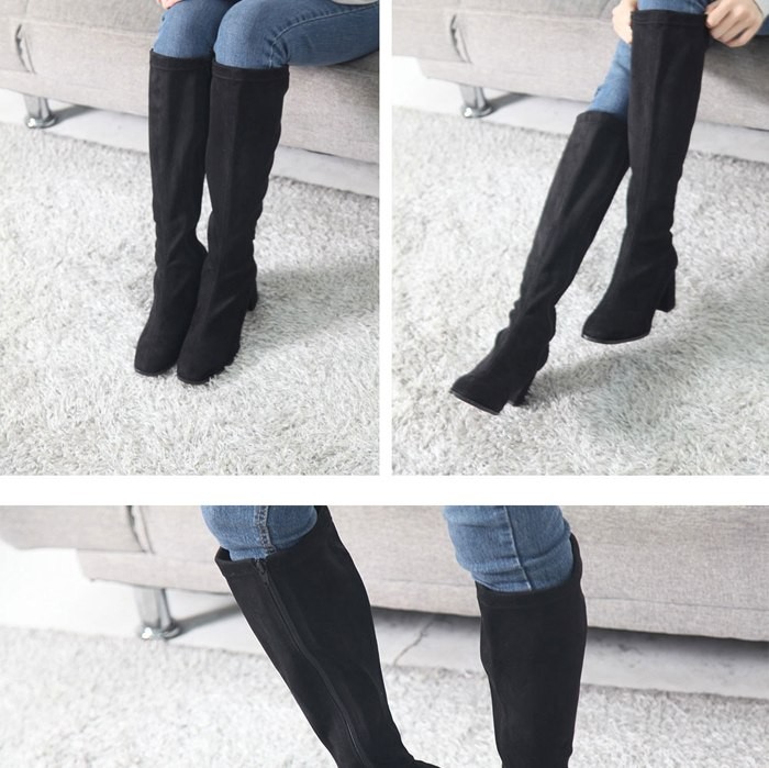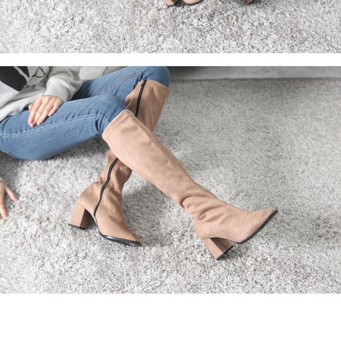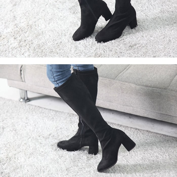商品名:ロングブーツ レディース チャンキーヒール 太ヒール スエード調 2017 秋冬 ファッション 靴 婦人靴