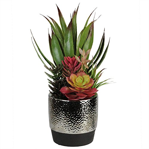 Northlight Artificial Succulents and Agave in Decorative Silver Ceramic Pot, 15", Purple