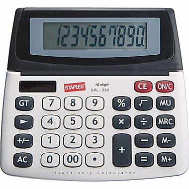 Staples SPL-250 10-Digit Large Display Calculator - Solar Powered with Battery Backup and Auto-Off
