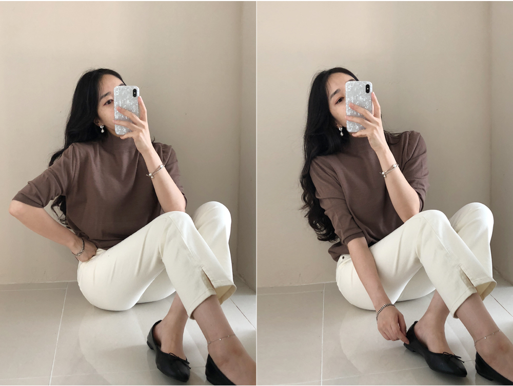 발목이 살짝 드러나는 기장감에 다리라인이 날씬하면서도