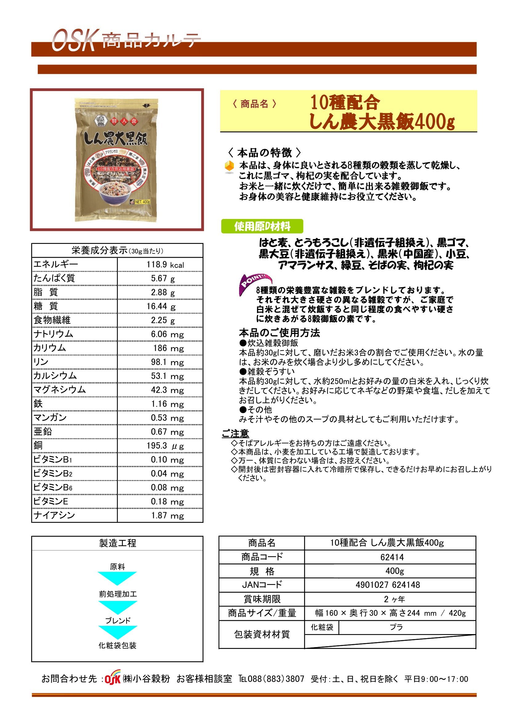 Steaming and drying 8 kinds of cereals which are considered to be good for the body (oat, corn (non-genetically modified) black soybean (non-genetically modified), black rice (Chinese), red bean, amaranth, mung bean, buckwheat)
