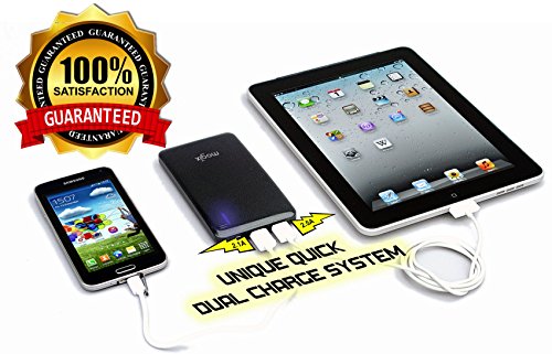 -. Feature : CHARGE ANY PHONE & TABLET - Our universal power banks are best in show with a true 10,400mAH power bank rating that not only charges ANY phone and tablet but will fill up iphone models 3 to 6 times, Android phones around 3 to 5, ipad mini around 2 times. / FASTER CHARGE THAN WALL PLUG - A leader in power packs with 2 USB high capacity output ports rated at 2.5A and 2.1A that can power 2 devices at one time - both ports can be used for any iphone, ipad/tablets, Samsung, LG, HTC, etc. / FITS IN POCKET - Avoid accidental drainage of power pack with our exclusive button design when in purse or bag. / LIGHTEST WEIGHT PACK - Ultra slim, slick and one of the lightest weight phone chargers (only 6.5 oz) on the market today! A perfect portable charger for travel or just everyday use that comes with it's own micro usb charging cord (phone cords are not included). / MAN'S NEW BEST FRIEND - Everyone loves power on the go! Find out why our faithful external battery charger will be your new best friend with our hassle FREE, 100% Satisfaction, or Your Money Back Guarantee!