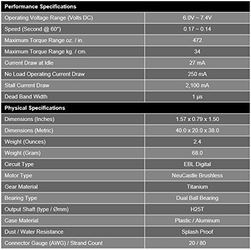 Studio : HITEC Publisher : HITEC Binding : Toy Product Description 1.Product Description With ultra-efficient Neu brushless motors, titanium gear trains, low current consumption and constant output power, the HSB-93XX series of servos is the perfect match for the most discriminating pilots and racers. 2.Features - Programmable 12-Bit PWM Digital Amplifier - Custom Long Life Brushless Motor - 1M Cycle Long Life Potentiometer - Constant Output Torque - Wide Operating Voltage (5 ~ 9 Volts DC) - Dual Ball Bearing Supported Output Shaft - Dust Resistant and Splash Proof Case - 25-Tooth Output Spline - Hybrid Nylon Reinforced Plastic and Aluminum Case - Low Power Consumption 3.Programmable Functions - End Point Adjustments - Direction - Fail Safe - Dead Band - Speed (Slower) - Soft Start Rate - Data Save / Load - Program Reset (From File) 4.Accessories - 3 Titanium / Steel Gears Set - Metal / Plastic / Duralumin Hybrid 1st Gear Set - Plastic / Aluminum Case Set