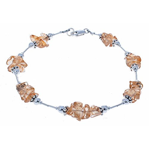 -. Title : Womens Orange Glass Chips & Sterling Silver Anklet with Daisies