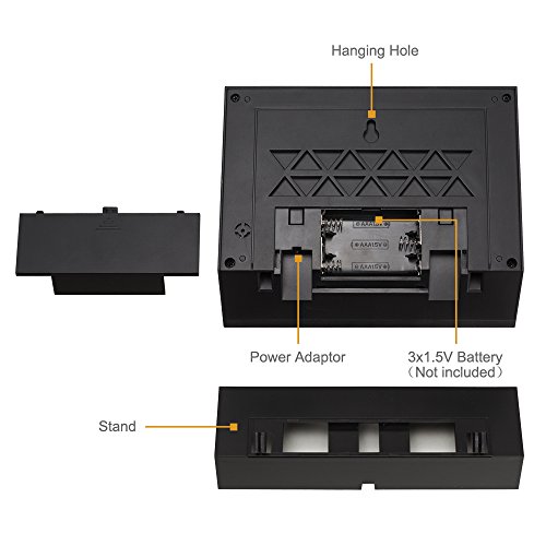 - Alarm function: dual alarm clock with snooze function, manual setting change of time, month, date and date of the week.Temperature alarm and 12/24 hour format time display