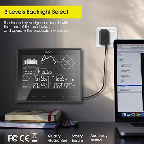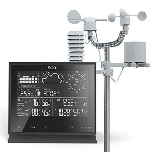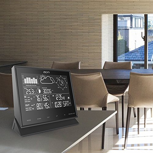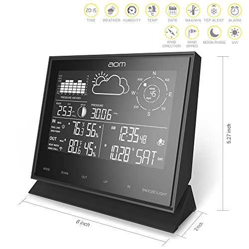 aom Weather Station with Dual Alarm Clock and Hygrometer Sensor, Temperature Alert, Humidity, Barometer, Hygrometer, Moon Phase, Air Pressure, Wind Speed, Wind Direction, Rain Gauge